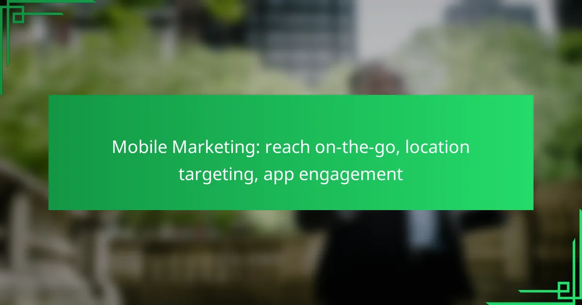 Mobile marketing offers a powerful way to connect with consumers on-the-go, utilizing the unique capabilities of mobile devices to deliver targeted advertising. By leveraging location-based strategies, businesses can engage users with relevant content and offers in real-time, enhancing the effectiveness of their campaigns. Additionally, improving app engagement through techniques like push notifications and in-app advertising helps retain users and encourages ongoing interaction.